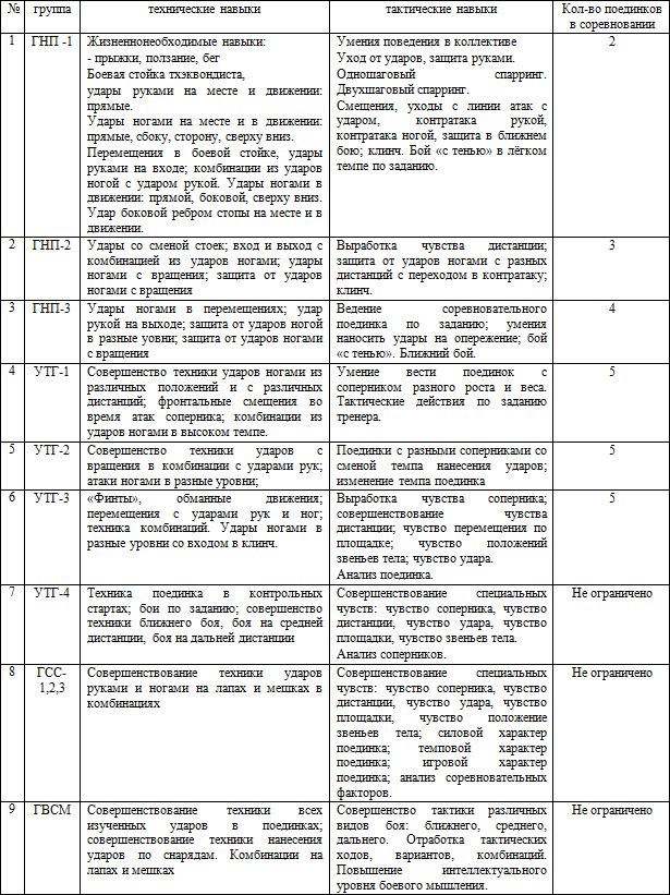 2.1 Программные требования к изучению двигательных умений и навыков в специализации паратхэквондо (ВТФ) по годам обучения