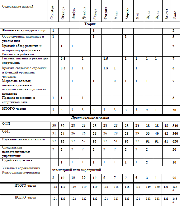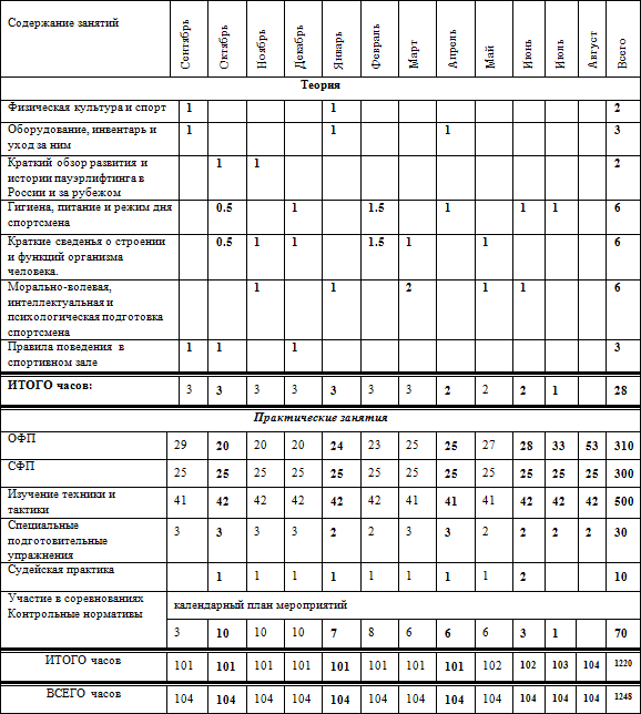 Таблица № 3 Тематический учебный план подготовки на год пауэрлифтинг