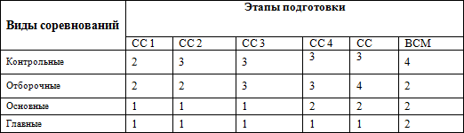 * сочетание средств подготовки в группе высшего спортивного мастерства зависит от количества соревнований и варьируется в зависимости от календарных планов федераций и текущих планов тренера-преподавателя
