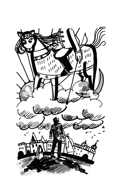 – Что принять? – невольно воскликнул я, а мы тем временем с Григорием Гавриловичем уже приникли спинами к забору, и сейчас же мимо нас, поднимая неизвестно откуда взявшуюся пыль, пролетели всадники в старинных одеждах, в высоких шлемах, касках и кирасах.