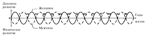 В космическом плане человеку свойственно число 7. В теле насчитывается семь чакр. Мы живем и становимся старше. Вчерашний день никогда не бывает похожим на завтрашний, ибо жизнь изменяется. Независимо от нашего пола, спады и подъемы нашей жизненной синусоиды чередуются через каждые семь лет.
