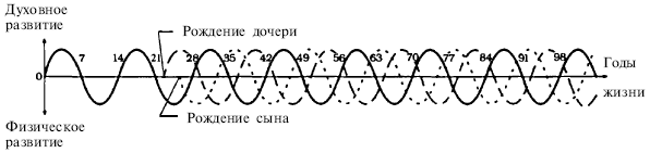 С 21 года они – нормальные молодые люди, которые при обоюдном согласии могут и пожениться. У женщины наступает период знакомства с материальными проблемами; она рожает детей, воспитывает их и требует, чтобы мужчина занимался тем же, но у мужчины в возрасте 21–28 лет происходит процесс духовного развития. В семье неминуемо возникают разногласия.