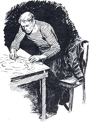 Агроном сидел за столом, заваленным образцами растений, и писал отчет о проделанной за день работе. Тут же был и Орест Викентьевич, копавшийся в книжном шкапу.
