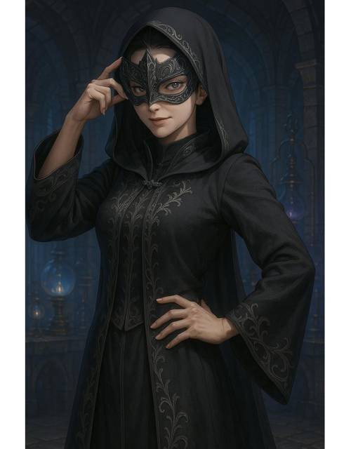Она обошла стол и оказалась в поле моего зрения. Это была высокая стройная женщина в… вау. Её плащ на мгновение распахнулся и я увидел обтягивающий чёрный костюм из латекса, высокие сапоги на шпильках. Напоминает полный комплект доминатрикс из дорогого эротического фильма.