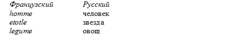 Учащиеся начинают с того, что придумывают собственные ключевые слова. Ключевое слово должно напоминать по звучанию иностранное слово. Так, для слова homme можно предложить «холм», для etoile – «вуаль», а для legume – «лагуну».