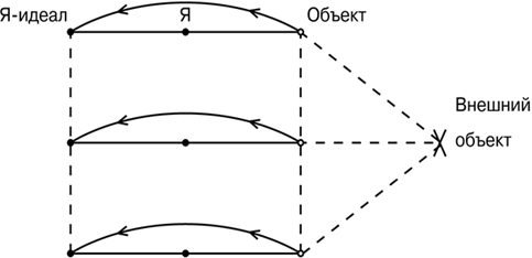 Предшествующими рассуждениями мы целиком подготовлены к тому, чтобы начертать формулу либидинозной конституции массы, по крайней мере такой массы, которую мы до сих пор рассматривали, которая, следовательно, имеет вождя и которая не могла приобрести вторично, путем слишком большой «организованности», качеств индивида. Такая первичная масса является множеством индивидов, поставивших один и тот же объект на место своего Я-идеала и идентифицировавшихся вследствие этого друг с другом в своем Я. Это соотношение может быть выражено графически: