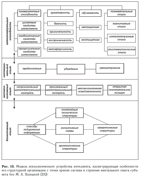 В российской психологии не слишком много оригинальных концепций интеллекта как общей способности. Одной из таких концепций является теория М. А. Холодной, разработанная в рамках когнитивного подхода (рис. 12).