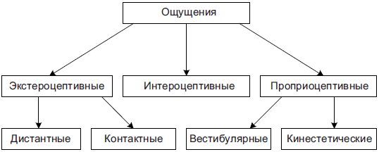 В зависимости от расположения рецепторов все ощущения, по классификации знаменитого английского физиолога Ч.С. Шеррингтона, делятся на три группы: