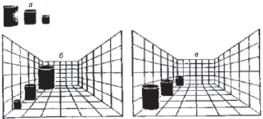 Немало автокатастроф происходит из-за того, что уклон дороги принимается за подъем, тень от скалы – за поворот дороги, а дерево или строение – за ее продолжение. Зрительное восприятие – цепь автоматически решаемых познавательных задач. При некоторых условиях в решении этих задач могут возникнуть сбои (рис. 4). Тот, кто испытывает иллюзию, обычно не осознает этого. Нереальное кажется реальным, но переубедить человека в обратном очень сложно. Ярким примером иллюзии, которую испытали все, является увеличение размеров Луны при ее расположении вблизи горизонта.