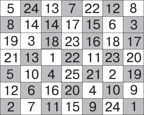 Одним из психологов, занимавшимся изучением внимания в рекламе, был немецкий психолог К. В. Шульте. Для проведения экспериментальных и прикладных исследований он разрабатывал специальные тесты. Один из возможных вариантов такого теста, модифицированный российским психологом Ф. Д. Горбовым, представлен на рис. 22. Тест получил название: «Красно-черные таблицы».