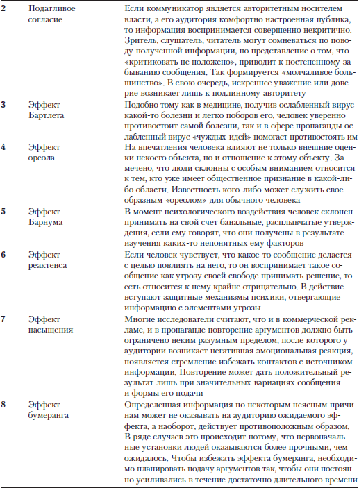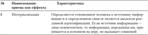 Классификация приемов и эффектов психологического воздействия в средствах массовой информации (по Г. С. Мельнику, 1996)