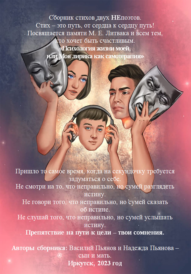 В своей работе мы постарались изложить непростые мысли простыми словами как простых, так и не непростых людей. К непростым я отношу научные труды, которые стоит прочесть и воспринять их вне зависимости от Вашей сферы интересов, специализации и тому подобных причин. Вообще, мой внутренний мир против подхода «я гуманитарий, мне эти физики ваши не нужно знать», «я не психолог, зачем мне всё это?», и так далее, и тому подобное. Тем самым общее образование отдаляется от нас, ведь именно в нём скрыт таинственный смысл. Лишь поэтому после каждого стиха я решил привести статьи и отрывки из книг замечательных людей. Для того чтобы Вы, читатель, смогли окунуться в удивительный мир под названием «Психология» и открыть в нём для себя что-то новое и прекрасное.