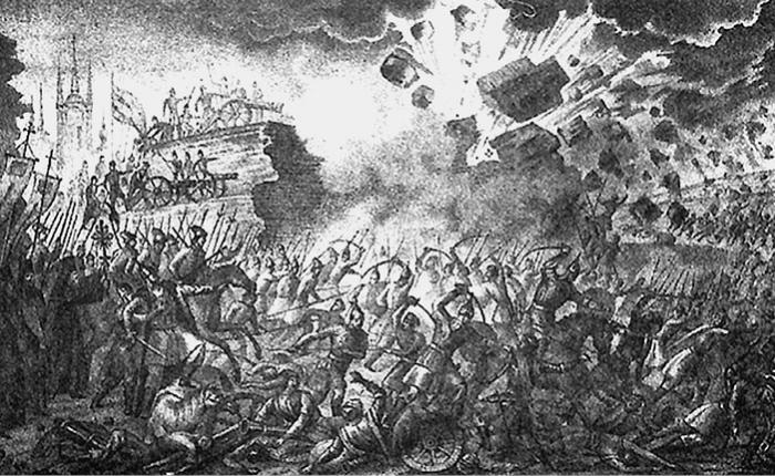 Осада Пскова войсками Стефана Батория. Гравюра Б. Чорикова. 1836 г.