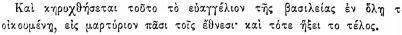 Мф. XXIV, 14. И проповедано будет сие Евангелие царствия по всей вселенной, во свидетельство всем народам, и тогда придет конец.