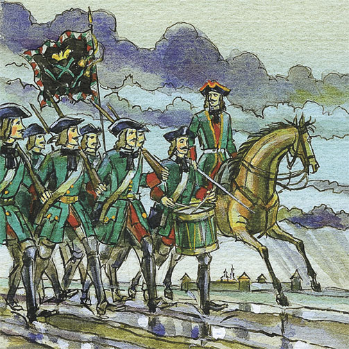 Русская армия шла к Нарве. Тра-та-та, тра-та-та! – выбивали походную дробь полковые барабаны.