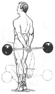 1. Взять руками, соединенными за спиной, гантель, весом от 10 до 20 фунтов. Каблуки вместе, носки врозь. Затем подняться на носках и плавно опуститься возможно ниже, так чтобы можно было почти что сидеть на каблуках. Потом стать в прежнее положение. Повторять упражнения пять раз и, постепенно повышая, дойти до двадцати, увеличить вес на пять фунтов и начать опять сначала.