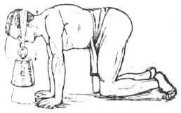 5. Стать на пол, касаясь его коленами и руками, на затылок, но отнюдь не на шею, повесить на широком ремне или ленте тяжесть в 10 фунтов; с этой тяжестью опускать и поднимать голову до утомления, но ни в каком случае не до изнурения.