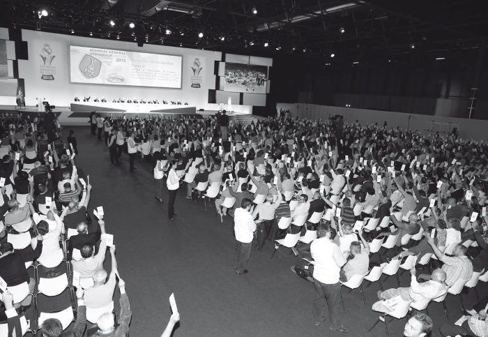 Сентябрь 2015. Генеральная Ассамблея представителей членов клуба. Они голосуют путем «mano alzada» (поднятие руки), это обычная практика в испанских компаниях. Независимая компания производит подсчет голосов