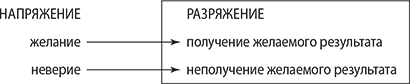 Развитие структурного конфликта можно проиллюстрировать аналогией. Представьте себе комнату. Представьте, что вы стоите в центре на равном расстоянии от двух стен. Вообразите, что желаемый результат написан на стене перед вами. Двигаясь вперед, вы приближаетесь к тому, о чем мечтаете. А сейчас представьте, что на стене позади вас черным по белому написано ваше «кредо»: «Я не могу иметь то, что хочу». С каждым шагом в сторону задней стены вы удаляетесь от того, о чем мечтали. И наконец представьте, что вас опоясывают две большие резиновые ленты. Одна из них, привязанная к вашей пояснице, тянет вас к стене впереди. Она олицетворяет собой систему под названием «желание». Вторая лента тянется