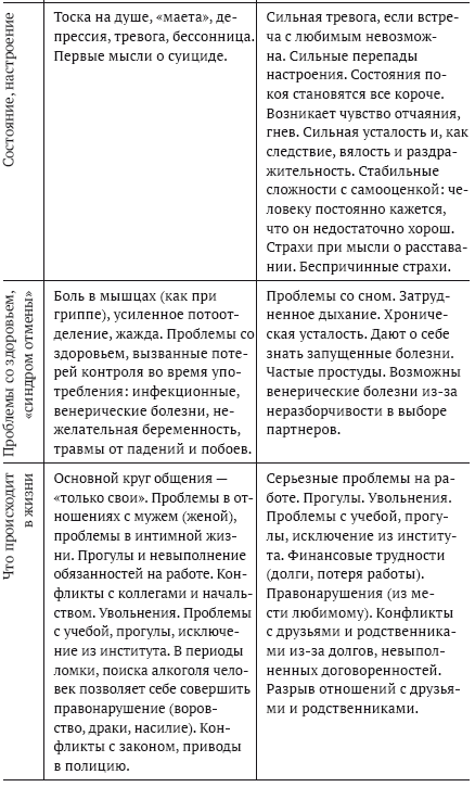 Надо сказать, что у большинства людей, ведущих относительно благополучный образ жизни, имеется какая-то слабость, которую можно было бы определить как зависимость. И все же трудно сказать, кому «повезло» больше: тому, кто находит способы балансировать на первой стадии, устраивая себе временные передышки-«детоксикации», или тому, для кого постепенная потеря контроля обернулась переходом на вторую и заставила обратить серьезное внимание на незрелые жизненные установки, подпитывающие зависимость.