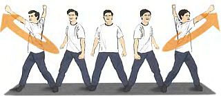 Совершенствуя выполнение этого упражнения, вы должны стремиться к тому, чтобы поворачивать бедра и туловище так, как это делает жеребец, разворачивая свою голову назад и в стороны. При этом посылайте свои руки с ускорением вверх, подобно развивающимся волосам лошадиной гривы.
