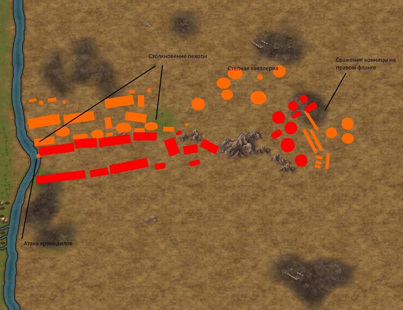Крокодил — грозное чудовище под водой. Однако на берегу против многочисленных людей с копьями и щитами я очень сомневаюсь, что рептили добьются какого-либо успеха. Эта атака нужная была просто для того, чтобы распылить наши силы и мое внимание. Шаддинцы сейчас готовы бросать в горнило будущей победы любую щепочку. Не тот ныне момент, чтобы жалеть популяцию рептилий.