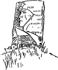 Когда приблизились к шоссе, ребята обратили внимание на окруженную бетонными надолбами каменную плиту, стоящую на небольшом возвышении.