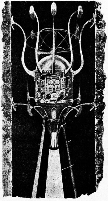 Миггс взглянул на простой воздухомер, указывавший это давление. Он представлял собой ящичек. С одной стороны этого ящичка клапан впускал воздух из колодца, с другой — воздух из аэроплана. Между воздушными струями качалась взад и вперед и обозначала давление тоненькая палочка, прикрепленная к ящику, толкая в свою очередь стрелку