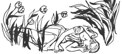 Он не договорил, так как розовые кусты раздвинулись, и на берег быстро выскользнуло четверо людей.Именно люди,а не другие существа, потому что они стояли на двух ногах, а в верхних конечностях держали короткие серебристые трубки с многочисленными темными клапанами. Одетые в глухие желтые костюмы, плотно облегающие их стройные тела, они остановились в нескольких метрах от путешественников и нацелили на них свои трубки.Лиц за желтыми масками нельзя было разглядеть, лишь в узких прорезях у лба различим был блеск настороженных и любопытных глаз.