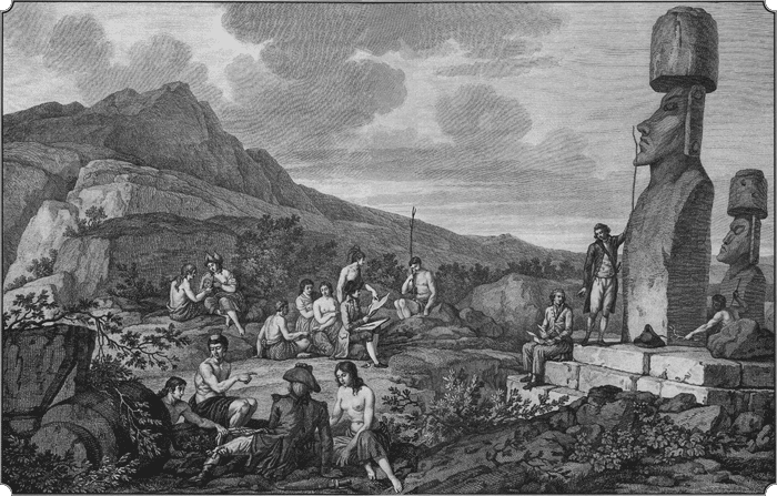 Ночью с 8 на 9 апреля я обошел вокруг остров Пасхи на расстоянии трех лье. Погода была ясной, и ветер переменился от норда до зюйд-оста менее чем за три часа. На рассвете я отправился в бухту Кука — из всех на острове она лучше всего укрыта от восточных ветров. Она открыта ветрам с запада, однако погода была настолько хорошей, что я надеялся в течение нескольких дней не испытать ветров из этой четверти.