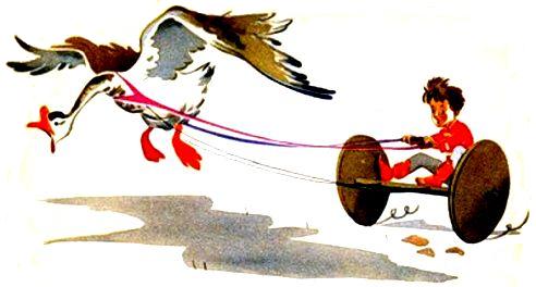 – послышался вдали голос гусака. Он возвращался назад, таща за собой тележку на одном колесе. Второе колесо валялось возле камня, о который тележка зацепилась и опрокинулась.