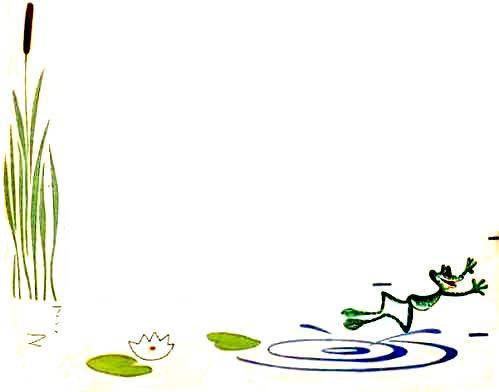 Мальчик заиграл на свирели, зовя квакушу. Потом заквакал: «Кква-кква-кква-ва». Из ближайшей лужи выскочила его приятельница -зеленая лягушка.