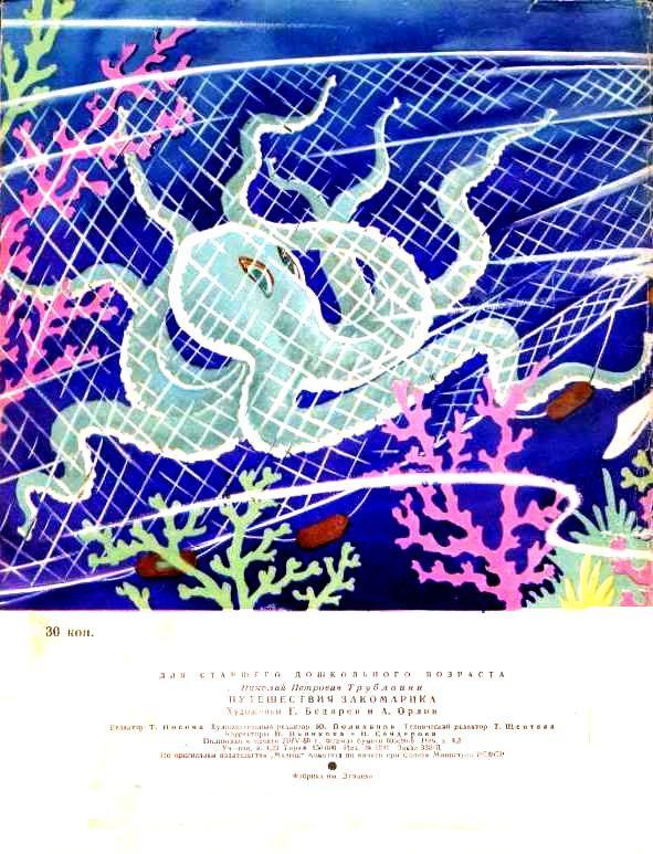 Тушь растворилась в воде и скрыла хищника. Однако рыболовы догадались, что осьминог попался в их сеть, и потянули со на себя. Но страшилище крепко держалось за скалу, и они не могли его оторвать. В это время Закомарик задел лежавшего на дне водолаза. Это была Потеряха. Закомарик привязал сеть к ее поясу и над самым ее ухом крикнул: «Бегите, страшилище догоняет!»