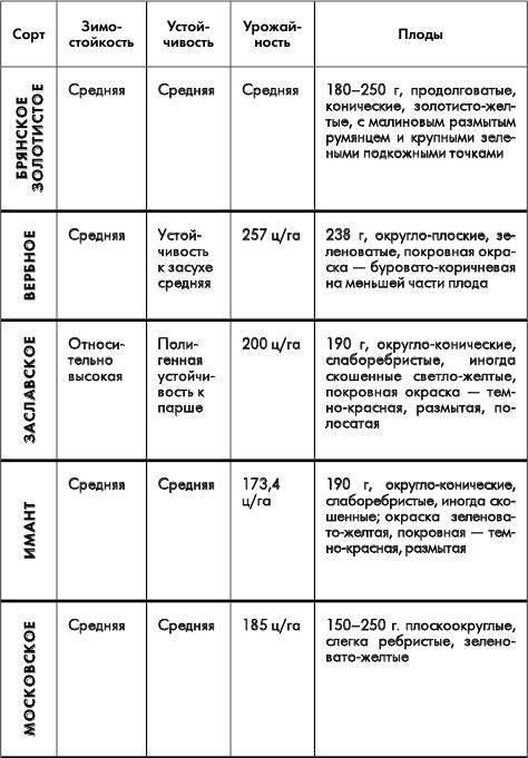 В первом столбце таблицы дано название сорта в алфавитном порядке по группам.
