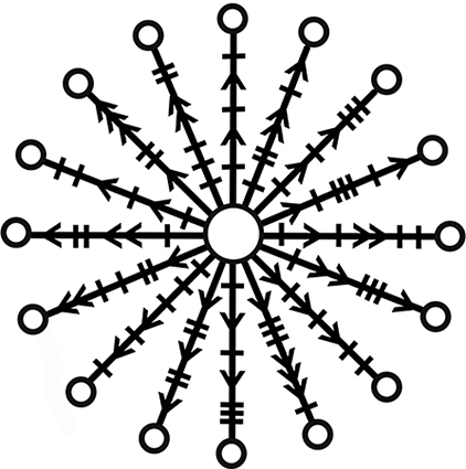Фитц проскользнул в разум Софи, и она смотрела, как части символа вставали на место. Три диагональных линии исходили из центра изображения и сходились с другими линиями, имеющими круги и черточки, все встречались в центральной точке и разветвлялись как лучи солнца.