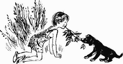 теперь «рэ» отлично выговаривает — лучше, чем я. Но лаять не любит. Он только вот так, один раз, гавкнет. Это значит — ему хорошо. Он как будто «ура!» сказал. Нам хорошо вдвоём гулять. Нам больше никто не нужен.Я ломаю ветку сирени. Она мне для дела нужна. У нас под окнами столько сирени! Её даже нужно ломать. А то из комнаты ничего не видно. Сирень так густо растёт, что в её кустах всегда как будто ночь. Посмотришь туда, а там чёрное всё. Страшно! Путька туда не лезет. Мы с ним боимся темноты. Мама всё собирается сирень подрезать. Она всё лето прособиралась. У неё ножниц нет. Нужны такие специальные, садовые ножницы. А у неё только ма-ни-кюр-ные. Или те, которыми она меня стрижёт, мою чёлку. Они сирень не берут. Лучше уж руками ломать.