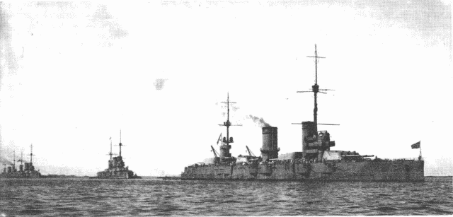 «На рейде был собран почти весь Балтийский флот. Выделялись четыре длинных светло-серых дредноута, недавно оконченных постройкой и вступивших в комплект действующего флота».