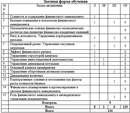Рабочая программа дисциплины «Финансовый менеджмент»