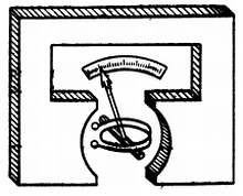 Рис. 19. В гальванометре катушка, по которой протекает измеряемый ток, расположена в поле электромагнита; она может вращаться вокруг горизонтальной оси.