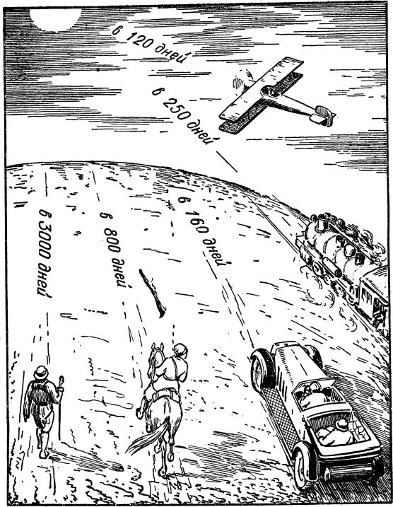 Сколько времени отняло бы путешествие на луну, если бы можно было его сделать пешком, верхом, на автомобиле, на паровозе, на самолете