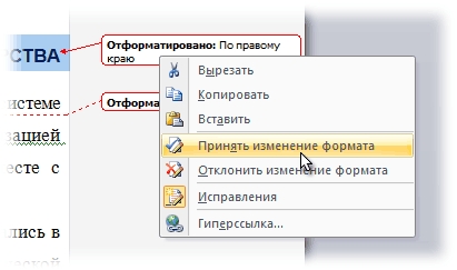 исправления или кнопками Принять (Accept) или Отклонить (Reject)на вкладке