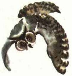 — Погляди-ка, кума, не летит ли Сова — отчаянная голова, уши торчком, нос крючком?