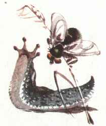 Летит она садом и видит: по листу Слизняк ползёт. Подлетела Муха к Слизняку и кричит: