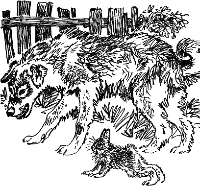 Джим лежит врастяжку на земле, а передними лапами зайчонка прижал к листьям, держит его. Зайчонок верещит отчаянно, Джим хвостом часто-часто виляет, а сынишка мой стоит над ними — и не знает, что ему делать.