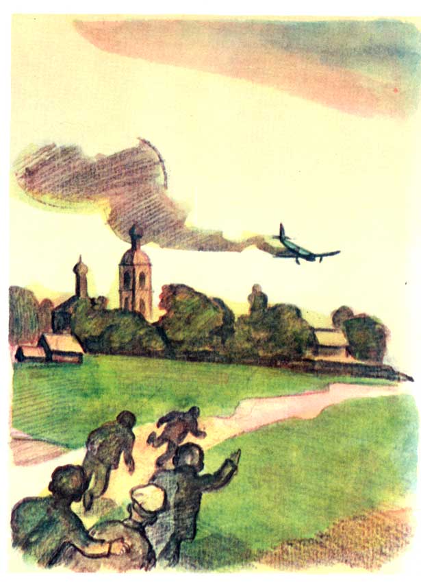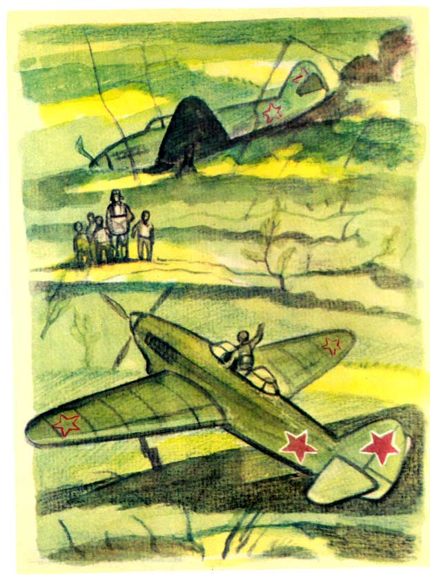 Чуть свет Юра выскочил из спящей избы и помчался в поле. Он бежал напрямик сквозь мокрый от росы орешник, через овраг, острекался злой осенней крапивой, но всё равно опоздал. Лётчиков не было. Лишь в тёмной торфяной жиже сиротливо торчал полузатонувший истребитель.