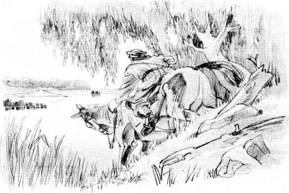 Заходило солнце, когда начальник разведки на коне подъехал к озеру Язно. Переправу день и ночь охраняли часовые. На плот мог попасть только тот, кто знает пароль. Может, девочки забыли пароль? Может, девочек задержали? Почему их нет?