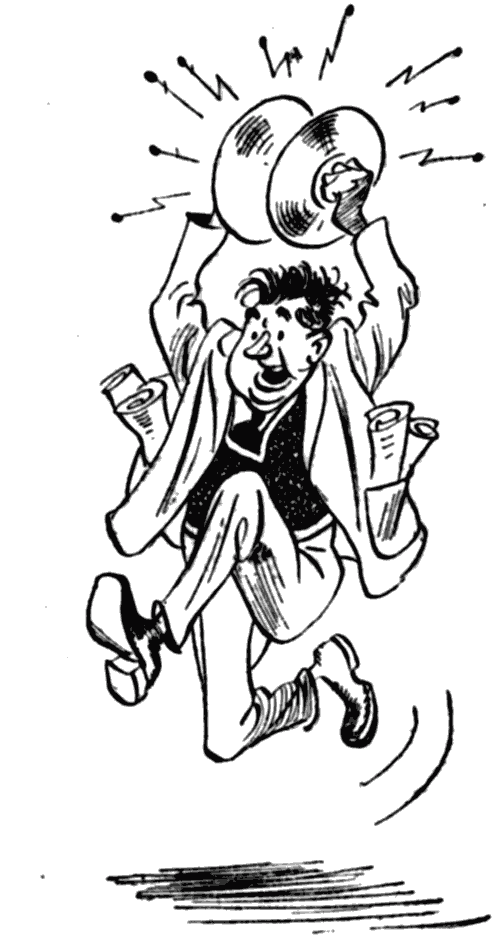 Ужас охватывает Столпника, Аллегро и Гав. Цепного. Скорей, скорей бумагу! Дайте, о, дайте чернила! Где оно, мое вечное перо?