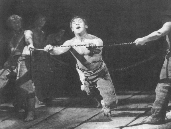 — А ваши так играли, как никогда в жизни не играли, — то есть все приобрело чрезвычайную конкретность — выдержит он там, или нет. «Ему покажут орудия пытки — он сдастся, не сдастся», — и так далее. И актеры это почувствовали и играли сердечно чрезвычайно. Играли так по существу, что зал понял, что что-то происходит другое — и затих и смотрел, затихший.