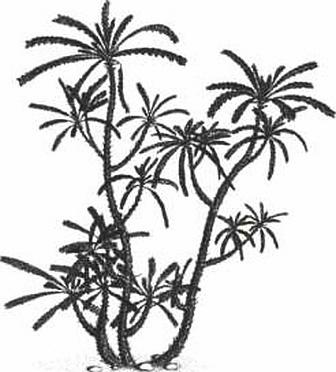 В мезозое на Земле появляются новые группы растений. Может быть, наибольшей известностью среди них пользуются беннеттиты, названные так в честь английского ботаника Дж. Беннетта. Остатки стволов и листьев беннеттитов очень похожи на цикадовые, и раньше эти два класса не разделяли. Но потом выяснилось, что органы размножения некоторых беннеттитов обоеполые, совсем как у покрытосеменных растений. То есть в одном «цветке» (правильнее называть его стробилом) беннеттитов находились и семязачатки, и пыльники с мужскими спорами. Обоеполость органов размножения не встречается у других голосеменных, ни у вымерших, ни у живущих ныне. Лишь в стробилах растений из класса гнетовых мы можем видеть сейчас остатки их былой двуполости. То есть беннеттиты – единственные известные голосеменные с обоеполыми органами размножения. Помимо строения органов размножения есть между беннеттитами и саговниковыми и другое отличие. Саговниковые по своему внешнему виду больше всего напоминают пальму – прямой ствол с кроной длинных перистых листьев. Ствол у саговников ветвится крайне редко и, как правило, вследствие