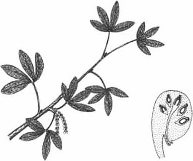 Появились в это время и другие, не столь известные, но не менее интересные группы растений. Например, кейтониевые. Их открыл в 1925 году английский ботаник Г. Томас, и, как и подавляющее большинство древних голосеменных, их сразу же отнесли к классу семенных папоротников. Кейтониевые интересны тем, что их семена находились внутри замкнутых капсул, что очень напоминает конструкцию плода покрытосеменных. Да и сложные четырёхлопастные листья кейтониевых с сетчатым жилкованием очень похожи на листья покрытосеменных (рис. 12). Правда, ещё более сегменты листа кейтониевых похожи на листья глоссоптерис. Настолько, что различить их по внешнему виду очень трудно. Может быть, эти растения родственны? Может и так. Но, к сожалению, и те и другие изучены пока ещё недостаточно. До сих пор мы не знаем, были ли кейтониевые деревьями или кустарниками. Ни достоверных побегов, ни их древесины пока не найдено. Существовали кейтониевые с конца триаса до начала позднего мела.